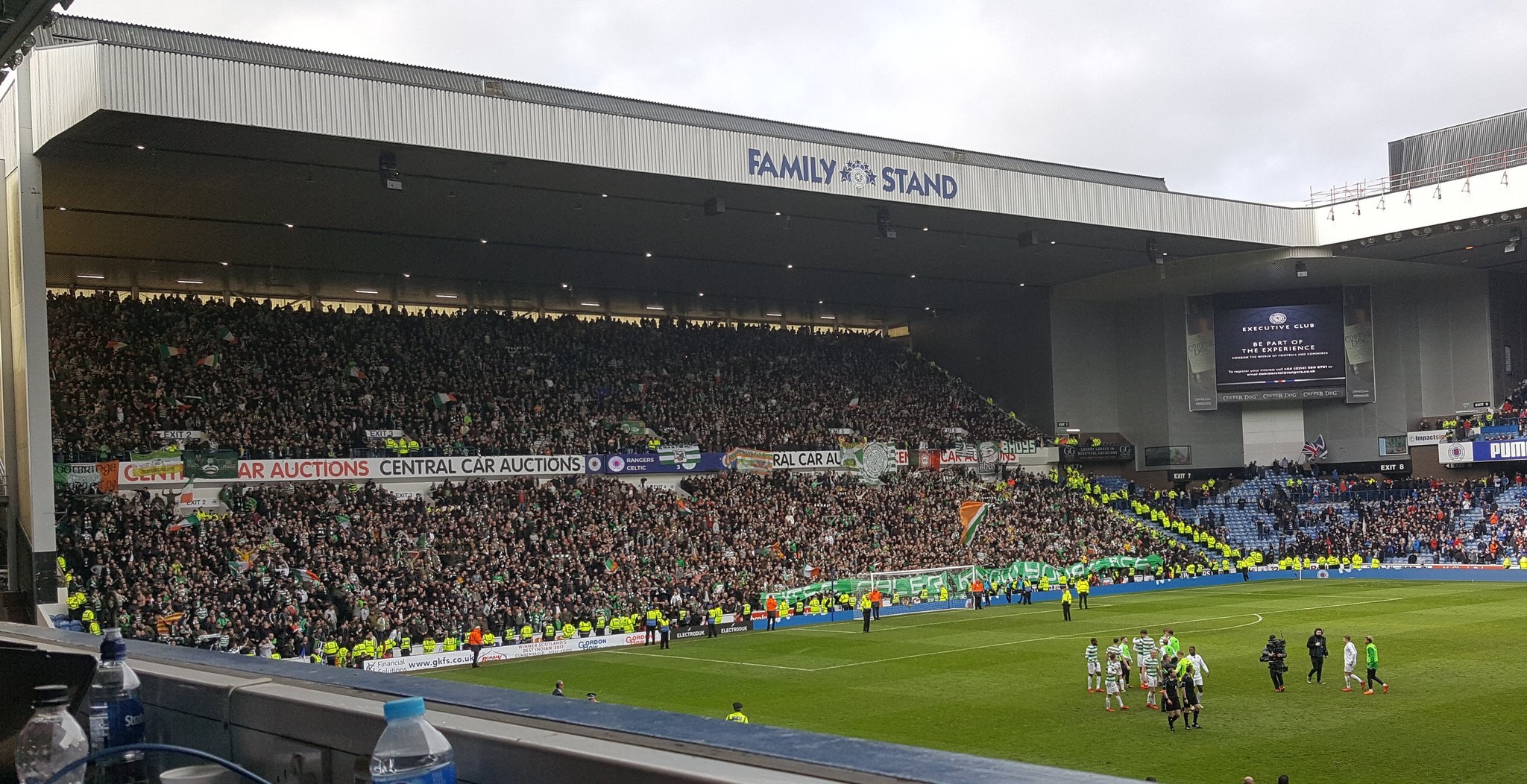 Located in the corner of the stadium between the Main Stand and the Lisbon Lions Stand, theRangers fans will be enclosed by black safety netting following a series of missile-throwing incidents in this fixture all coming from theRangers support.