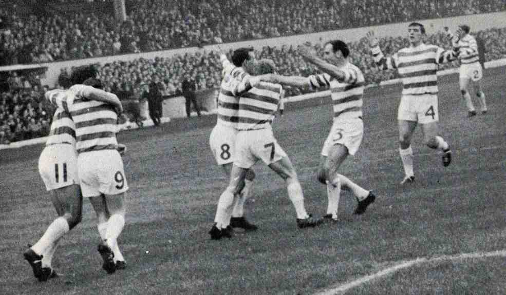 The Celtic side was Simpson, Gemmell and O’Neill; Murdoch, McNeill and Clark; Johnstone, Lennox, McBride, Auld and Hughes (Chalmers).