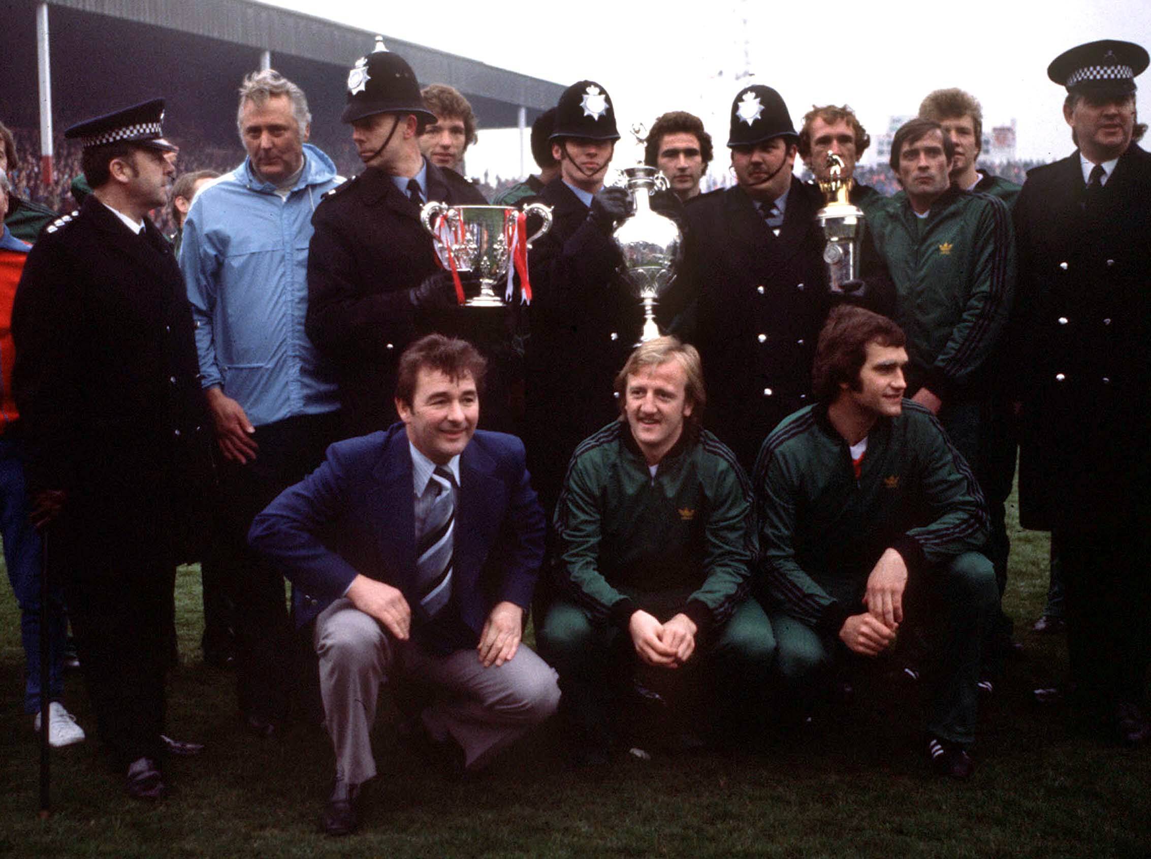 01.05.1978 Photo: imago/Colorsport Nottingham Forest manager Brian Clough, Kenny Burns, Larry Lloyd, Assistant Peter Taylor plus Martin O Neill at the back