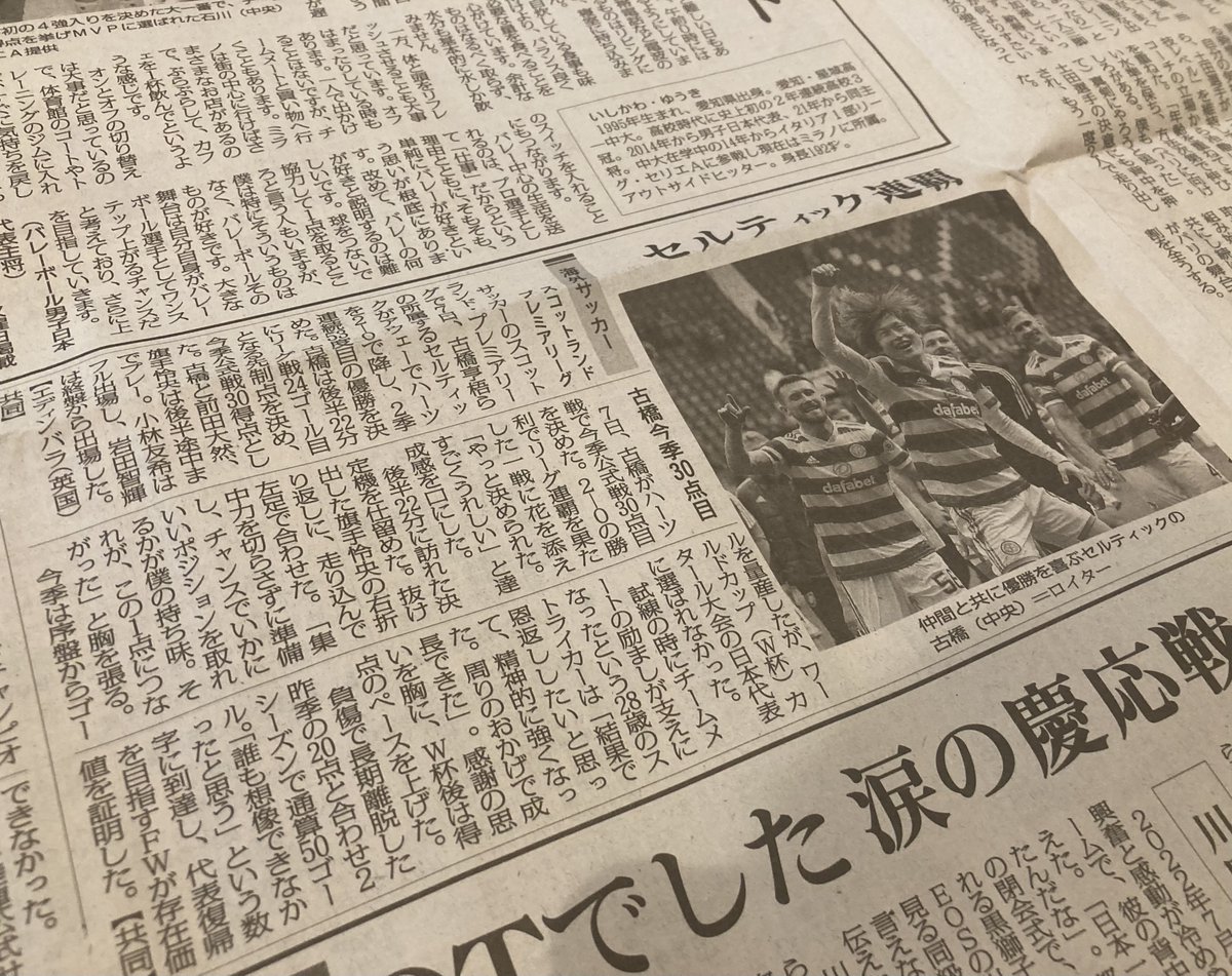 So, for people over the age of 50 who prefer paper-based newspapers, there are very few opportunities to be interested in football on a daily basis. I don’t know the age group of Celtic fans in Japan strictly, but I think it’s probably relatively young people who is interested in football. I hope that people over the age of 50 will know this Celtic news, which will lead to Celtic gaining new fans.