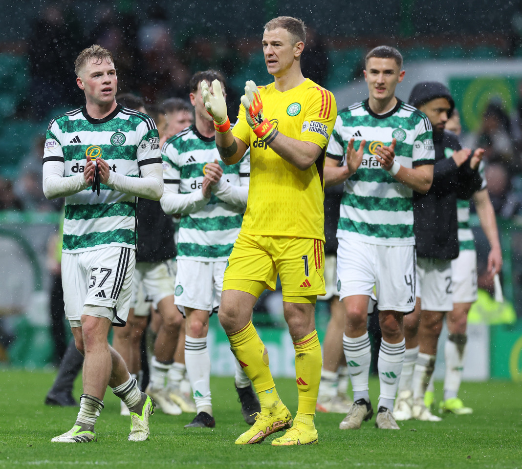Celtic v St. Johnstone – cinch Premiership – Celtic Park Celtic players applaud the fans following the cinch Premiership match at Celtic Park, on Saturday March 16, 2024. Photo Andrew Milligan
