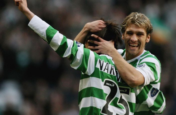 Celtic’s Stephen McManus celebrates with team mates after scoring during the Scottish Premier division match between Hearts and Celtic at Tynecastle stadium on January 1, 2006, in Edinburgh. Scotland.Celtic won the match 3-2. (Photo by Jeff J Mitchell/Getty Images)